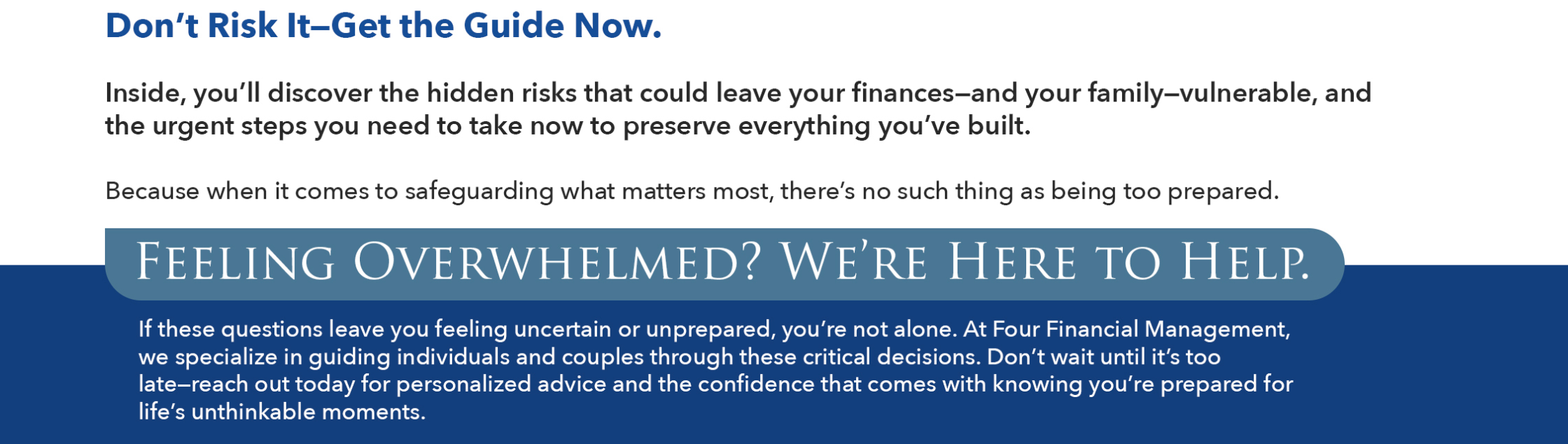 "Before It's Too Late: Are You Truly Prepared for Life's Unthinkable Moments?" is designed for people like you, who have worked hard to build a solid financial foundation and want to help ensure it stays that way. Ever find yourself asking these questions?